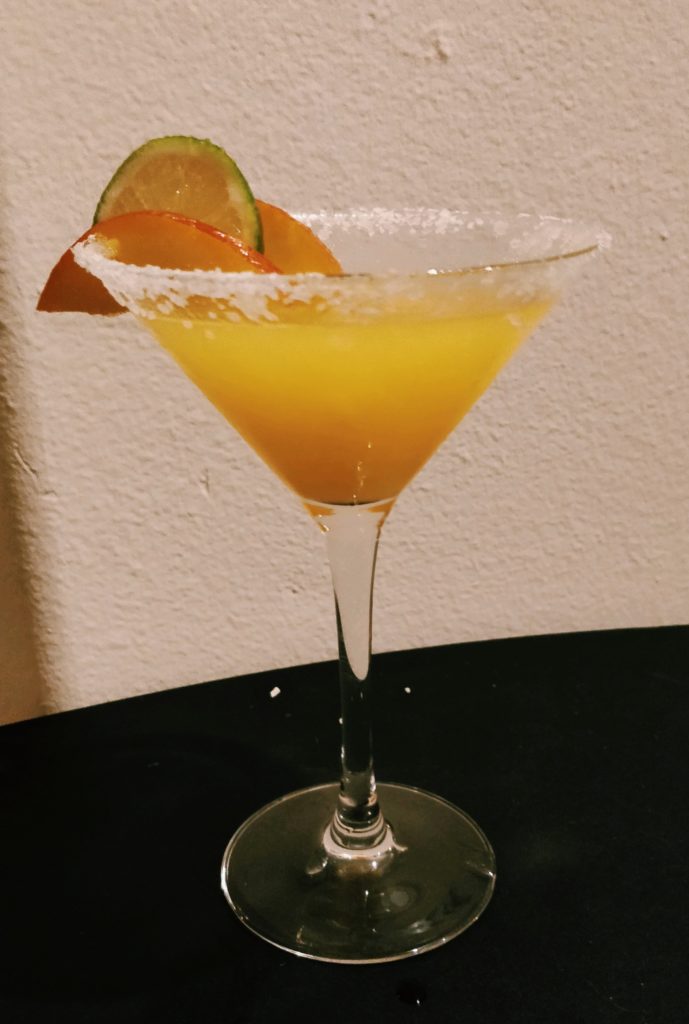 Squeeze mango and lime juice into shaker, throw the mango meat in there too. Add all other ingredients and shake more vigorously than most drinks to squeeze the extra bit of mango juice out. Salt rim of the glass. Pour drink into glass. Garnish with mango and lime. Serves 1, but you can share, right?